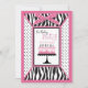 Convites Rosa selvagem do impressão da zebra & do bolo de