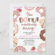 Rosa, Rosquinha, quer perder este Convite de Aniversário de Festa Qualquer idade que não queira perder este convite de aniversário de rosquinha para uma rapariga com várias rosquinhas decoradas diferentes e algumas cupcakes.