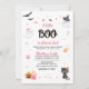 Rapariga Halloween Um Pequeno Convite De Chá de fraldas De Fantasma Boo Apresentando nosso Encantado Convite De Chá de fraldas Tema De Halloween, onde abóboras adoráveis, chapéus de bruxas caprichosas, fantasmas amigáveis, poções mágicas, e um borrão de lua e estrelas se juntam para criar uma celebração inesquecível!
