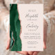 A borda esquerda deste elegante convite de casamento moderno apresenta uma esmeralda verde aquarela agate borda aparada com falsa rosa dourada. O texto personalizável combina a escrita manual de cinzas de carvão, fontes em copperplate e itálico em um fundo cor-de-rosa pincelado. O verso apresenta um design emerald verde e rosa dourado.