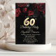 Convites Rosa vermelha Black Dourado 60º Aniversário