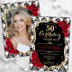 Convites Rosa vermelha Black White Damask Foto 50th Birthda