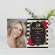 Convites Rosa vermelha Black White Stripes Foto 50º Anivers