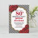 Convites Rosa vermelha de 80 de aniversário para mulheres