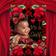 Chá de fraldas Afro-Americana Garota Bonita Flores Bonito Flores Vermelhas Coração Floral Chá de fraldas Bebê Frisa Convite, Nova Menina