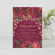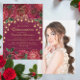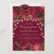 Convite de aniversário de Quinceañera para meninas com lindas e elegantes flores vermelhas com brilho dourado e luzes de cordas brilhantes. Personalize adicionando sua foto à parte traseira da placa.