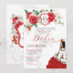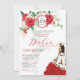 Convites Rosa vermelha Floral Crest Elegante Charra Quincea