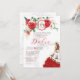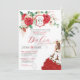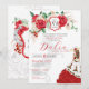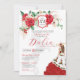 Convites Rosa vermelha Floral Crest Elegante Charra Quincea