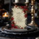 Ponha o tom para uma noite inesquecível com esta rosa vermelha gótica e a design do Dia das Bruxas. Apresentando dramáticos rosas de cremson, detalhes vintage de renda preta e um roteiro elegante em um fundo de pergaminho, esse estilo tão romântico é perfeito para mansões assombradas, bolas de mascarada ou encontros assustadores. Uma mistura de glamour vintage e charme gótico, é a maneira perfeita de receber convidados para a sua celebração de Halloween em estilo.