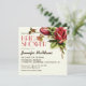 Chá de panela de rosa vermelha clássico. Tema floral para o casamento da primavera com flores em todos os lugares. Decorado com padrão de listras no verso. Rosas brancas florescentes. Personalize o convite para qualquer ocasião especial, como casamento, festa de noivado, comemoração de aniversário, aniversário do marco, chá de fraldas e muito mais.