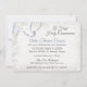 Blue Rosary e White Lace, o primeiro Convite da Comunidade Santa com texto elegante e faixas azuis no lado inverso do cartão.