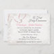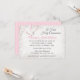 Rosário rosa e renda branca, meninas, o primeiro Convite à Comunhão com texto elegante e faixas rosa suaves no lado oposto da carta.