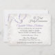 Violet Rosary e White Lace são meninas, o primeiro Santo Convite Comunitário com texto elegante e listras roxas suaves no verso da carta.