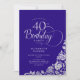 Convites Rosas aniversário de 40 anos Roxos Simples Elegant