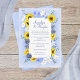 Este convite azul empoeirado com girassóis vibrantes e rosas é perfeito para um tema de casamento de jardim. As cores são versáteis para o azul-céu claro, o ouro e as cores amarelas do casamento. Flores brancas é uma bela adição à fronteira do girassol e rosa.