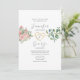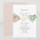 Boho, elegante, moderno, convite de casamento rosa beijo floral com coração de corda dourada, rosas em aquarela e caligrafia simples.