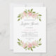 Esses convites simples e elegantes para chás apresentam pulverizações de rosas rosa românticas com folhas verdes, e texto de cinza mole em fundo branco limpo para um olhar que consegue ser inspirado tanto na moda quanto na safra.