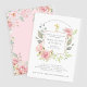 Estes belos e elegantes convites da Primeira Comunhão apresentam um quadro de adoráveis rosas cor-de-água cor rosa com folhas verdes e sotaques de rosa-ouro falsos, e texto de cinza macia sobre um fundo branco limpo para um olhar que consegue ser inspirado tanto na moda como na safra. Há também um olhar de ouro falso. A parte traseira do convite apresenta um quadro floral correspondente em um fundo rosa pálido e suave.