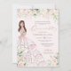 Elegante design de luxo com rosas brancas e rosas cor-de-rosa com pincel suave, sotaques de rosa, e uma bela boneca com um luxuoso vestido de bola voada. Todo texto é totalmente personalizável.