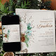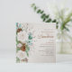 Casamento no inverno com rosas brancas, pinheiros em cones, algodão, verde e eucalipto. Este design de floral e folhagem de aquarelas está sobre um fundo neutro com caligrafia elegante em marrom-cobre. Perfeito para o outono, inverno, ano novo e temas de natal. Por favor, procure na minha loja itens correspondentes na coleção de rosa branca de inverno.
