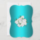 Este adorável convite para o casamento de rosa branca apresenta um belo buquê de rosa branco sobre um lindo fundo metálico, brilhante fundo aqua. Há outro buquê de rosa branco atrás.