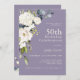 Com um popular esquema de cor neutra de flores brancas e fundo roxo lavanda, este convite de aniversário feminino 50º apresenta um buquê de canto de flores brancas de aquarela com verde-verde-eucalipto à direita. As flores incluem rosas, híbridos e flores misturadas que combinam um efeito adorável. Os emparelhamentos de texto usados neste design apresentam uma combinação de fontes sorif populares. Todo o texto pode ser editado, para que você possa usar este convite para qualquer idade. Além disso, este convite está disponível como convites impressos ou convites para download digital sem papel para envio eletrônico à sua lista de convidados.