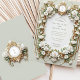 Convites Rosas brancas elegantes com Faux Dourado