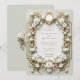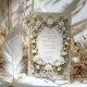 Ponha o tom para o dia do seu casamento com este belo design de convite, com rosas brancas delicadas cercadas de uma folhagem verde esmagadora. O cartão é enquadrado por ornamentado falso ouro barroco e padrões inspirados na arte, dando-lhe um eterno e uma sensação sofisticada. O fundo verde macio adiciona um toque de elegância, fazer perfeito para casamentos formais ou eventos românticos. Por favor, note que o ouro e os efeitos gravados fazem parte do design impresso e não incluem folhas metálicas reais nem texturas levantadas.