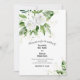 Um convite de casamento simples e elegante, com rosas brancas de aquarela e flores do hálito do bebê.