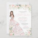 Elegante design de luxo com rosas brancas e rosas cor-de-rosa com pincel suave, sotaques de rosa, e uma bela boneca com um luxuoso vestido de bola voada. Todo texto é totalmente personalizável.