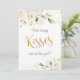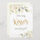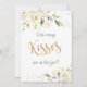 Este design apresenta uma ilustração aquosa de rosas de creme branco e folhagem verde. O texto "Kisses" é escrito em um estilo de script. Este sinal de cartão é excelente para adicionar diversão e entusiasmo ao seu Chá de panela, Festa de solteira ou Chá de fraldas.