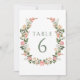 Elegantemente eterno, esses números das mesas de casamento apresentam delicada cor d'água, cor rústica pastel rosa rosa, coroa, coroa, coroa e um texto verde empoeirado.
