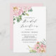 Celebrar a noiva a ser com este convite de noiva floral cor-de-rosa. Ele apresenta ilustrações de watecolor de rosas de jardim, hydrangeas e buquês de eucalipto com um roteiro elegante. Personalize adicionando nomes, data, hora, local e outros detalhes. Este convite para almoçar floral é perfeito para chás de primavera e jardim.