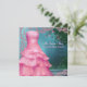 Vestidos e rosas da festa de vestimenta rosa e convites de Quinceanera. Personalize com os detalhes de sua parte na frente e atrás, adicione sua escolha de texto, estilo de fonte, tamanho e cor.