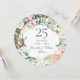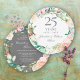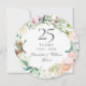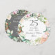 Com uma delicada grinalda floral em aquarela, este convite de aniversário de casamento de 25 anos botânico elegante pode ser personalizado com as suas informações especiais de aniversário de prata. O verso apresenta uma grinalda floral correspondente emoldurando as datas do aniversário em texto branco elegante sobre um fundo prateado. Desenhado por Thisisnotme©