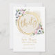 Modelo branco e dourado, glama, moderno, elegante e convite de festas chic, com ouro, hexágonos entrelaçados (o ouro é um efeito digital, não uma folha real), uma mancha aquosa numa matiz de ouro, delicados buquês florais de anêmonas, eucalipto e rosas cor-de-rosa e a palavra "trinta" na escrita moderna de caligrafia. A tipografia em uma matiz dourada arredonda este modelo floral branco e dourado do 30º convite de aniversário para uma mulher que comemora seu trigésimo aniversário.