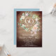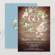 Com uma delicada guirlanda de rosas florais em aquarela e folhagens num fundo boho de painéis de madeira rústica, este convite botânico chic para o aniversário de 60 anos de casamento pode ser personalizado com as informações do seu aniversário de diamante especial. O verso apresenta uma guirlanda floral correspondente emoldurando as datas do aniversário em texto branco elegante num fundo azul diamante. Concebido por Thisisnotme©