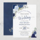 Este belo convite de casamento contém uma redação formal onde os pais da noiva estão acolhendo a cerimônia. O design é uma bela mão pintada de aquarela com rosas, folhas e verde em azul, marinho, índio e sábio poeirentos. Uma bela maneira de convidar seus amigos e família para ajudá-lo a celebrar seu dia especial.