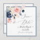 Convites Rosas de Blush Azul Dusty com Cor de Água