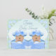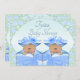 Bonito convites para chás de fraldas de gêmeos azuis para rapazes. Os convites elegantes e brancos dos gêmeos, com dois bebês afro-americanos/indianos, sorridentes e felizes, numa bela caixa azul de presentes com fitas bolinhas e arcos. Há belas flores azuis rosas decorações de canto floral em um lindo plano de fundo azul claro. Estes adoráveis, glamourosos, quentes convites estão decorados em ambos os lados. Trendy, legal, divertido, na moda, convites modernos. OBSERVE: Todos os produtos do Zazzle têm imagens impressas em formato plano. Se precisar de ajuda para personalizar seu produto, entre em contato comigo pela loja e terei todo o prazer em ajudar. Arte original ©delightful-doodles.com