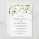Convite para o casamento floral de marfim branco elegante com buquê elegante de folhas brancas, marfim, creme e eucalipto verde-sábio e buquê elegante de aquarela.