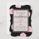 Grandes rosas de repolho cor-de-rosa são espalhados sobre um fundo preto neste design moderno, romântico. O centro está rodeado por um local em forma de coração preto. Todo texto é facilmente personalizado.