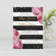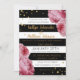 Banda negra e branca com pontos brilhantes de ouro e rosas cor-de-rosa modernos cartões de convite para casamento.