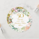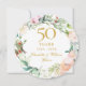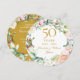 Com uma delicada grinalda floral em aquarela, este convite de aniversário de casamento número 50 botânico elegante pode ser personalizado com as suas informações especiais de aniversário de ouro. O verso apresenta uma grinalda floral correspondente emoldurando as datas do seu aniversário em texto branco elegante sobre um fundo dourado. Concebido por Thisisnotme©