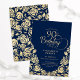 convite de aniversário marinho 90 elegante de ouro azul . Design clássico com rosas, folha de ouro falsa e letra de script de tipografia. A Trendy convida o cartão perfeito para uma festa de na moda. Personalize com seus próprios detalhes. Pode ser personalizado para qualquer idade. Impressos convites Zazzle ou modelo de impressão digital instantânea para download.