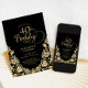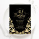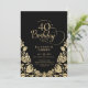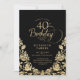 Convite de festas aniversário de 40 anos de ouro preto elegante. Design clássico com rosas, folha de ouro falsa e letra de script de tipografia. A Trendy convida o cartão perfeito para uma festa de na moda. Personalize com seus próprios detalhes. Pode ser personalizado para qualquer idade. Impressos convites Zazzle ou modelo de impressão digital instantânea para download.