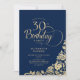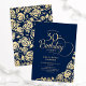 Convite de festas simples e elegante em azul marinho e ouro. Design clássico com rosas, folha de ouro falsa e letra de script de tipografia. A Trendy convida o cartão perfeito para uma festa de na moda. Personalize com seus próprios detalhes. Pode ser personalizado para qualquer idade. Impressos convites Zazzle ou modelo de impressão digital instantânea para download.
