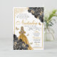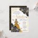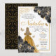Convite de Aniversário para Quinceanera Floral Dourada e Negra Elegante