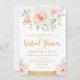 Ajude a comemorar os futuros pais a atravessar a distância com este belo convite para chás de fraldas. O design apresenta bonito rosas cor-de-água, cor-de-rosa, verde e verde-ouro.