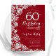 Floral vermelho prateado 60º convite de aniversário. Design elegante com rosas, folha de falso prata e letra de script de tipografia. A Trendy convida o cartão perfeito para uma festa de na moda. Pode ser personalizado para qualquer idade. Impressos convites Zazzle ou modelo de impressão digital instantânea para download.